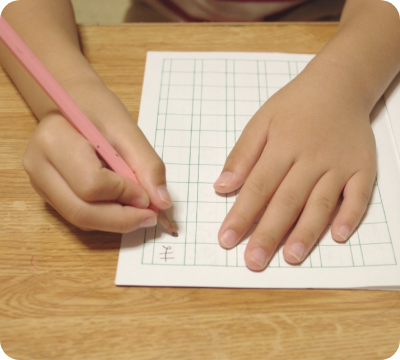 鉛筆の持ち方や文字を学び、学びの態度や学習意欲を高めます。 -